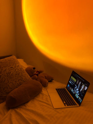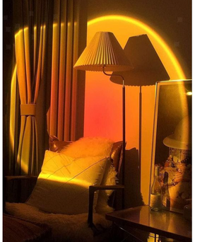 دلوقتي مع كشاف LED ضوء الغروب 360°… حوّلي أي ركن لمكان شاعري في ثواني بإضاءة غروب الشمس الدافية ووميض رومانسي.