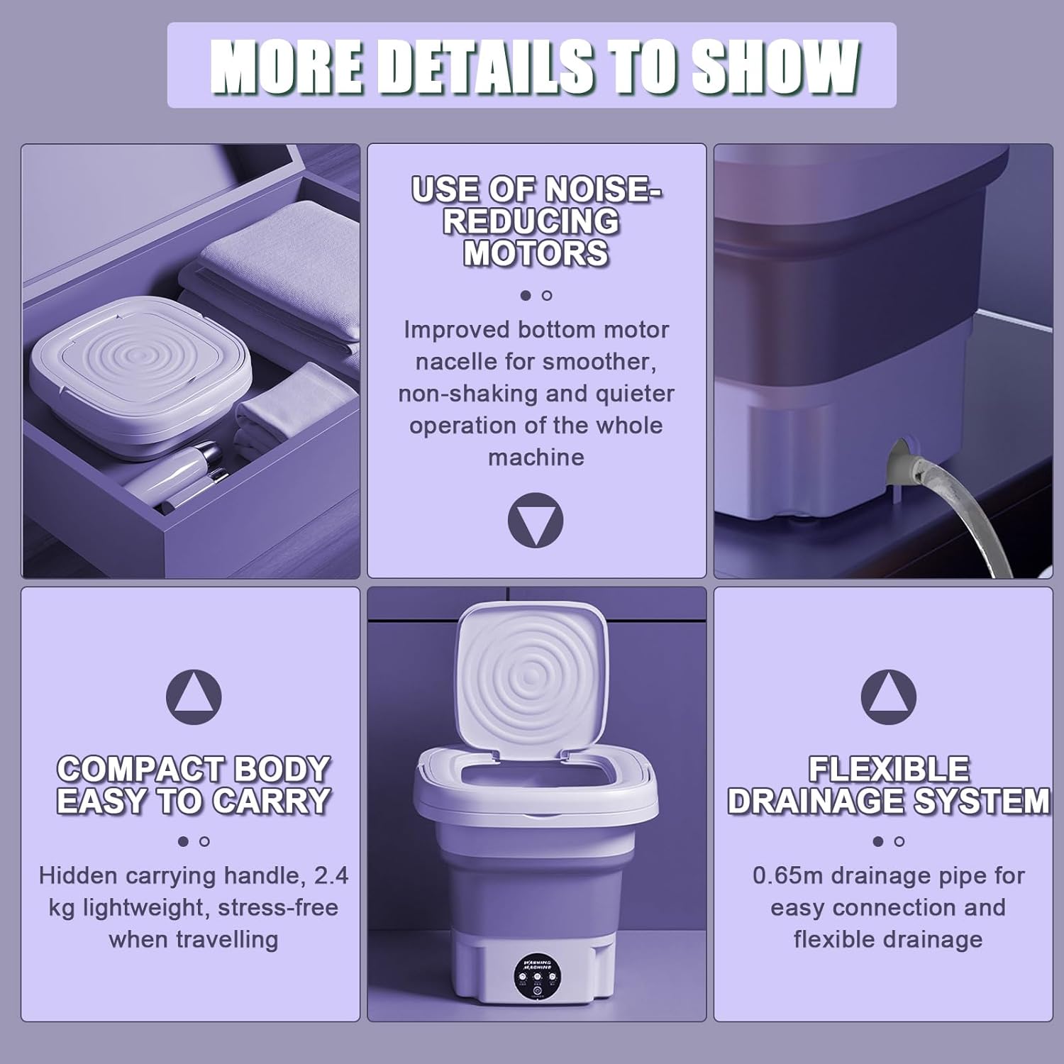 حجم صغير وسعة عملية لغسل الملابس الخفيفة في أي مكان: سفر، تخييم، سكن طلابي، أو للملابس الداخلية والأطفال. تشغيل هادئ مع خاصية التعقيم ومقبس أوروبي.